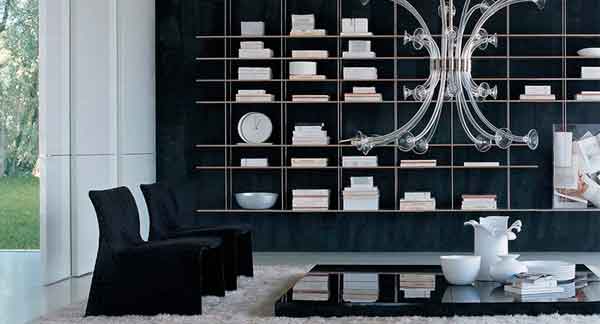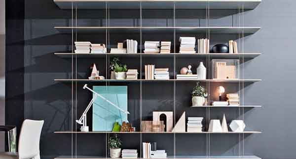 Graduate de Molteni & C es un espectacular sistema de estanterías en suspensión de estética simétrica y uniforme.