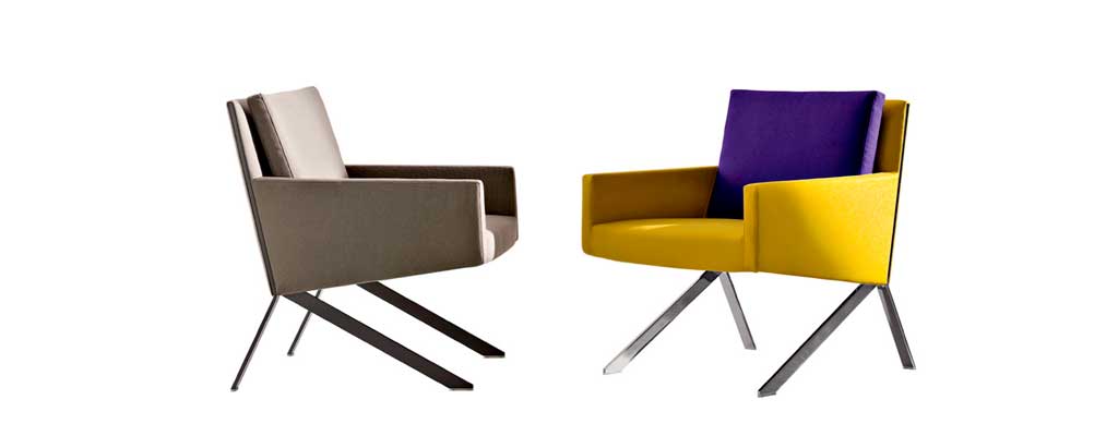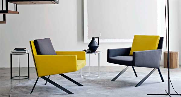 La butaca Theo de B&B Italia es caracteritza per la seva peculiar geometria, que sorprèn i li fa diferenciar-se de la resta de col·leccions.