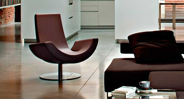 Fly de la firma italiana Arketipo és una confortable butaca de respatller elevat i amb una elegant base giratòria.
