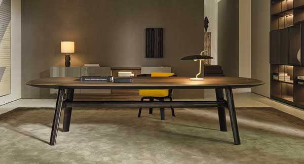 Patentada pel prestigiós dissenyador Rodolfo Dordoni, la taula destaca pel seu espectacular taulell, que incorpora un cantell circular a la part superior, conectant directament amb les potes mitjançant una suau corba cap abaix.