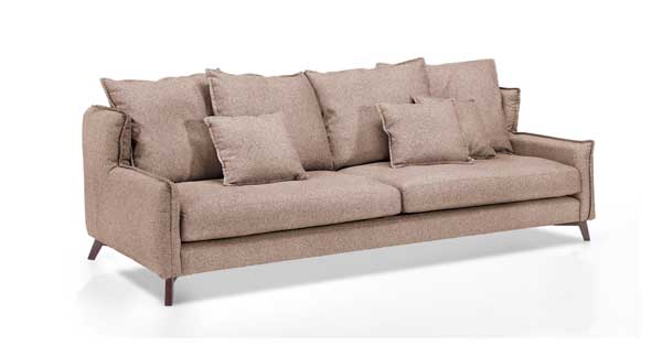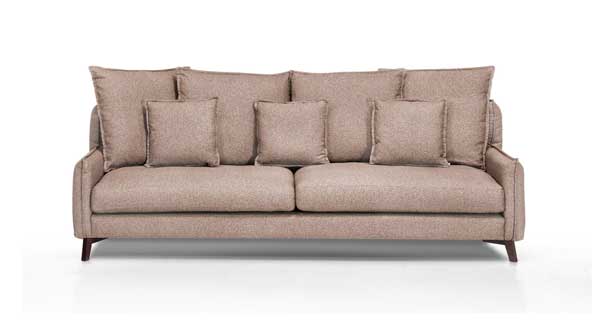 El sofà disposa d’un respatller alt format per còmodes coixins reclinables de gran tamany, que s’adapten perfectament al cos segons les necessitats. D’altra banda, els braços es caracteritzen per la seva costura a la part frontal, que denota un caràcter sobri i atemporal.