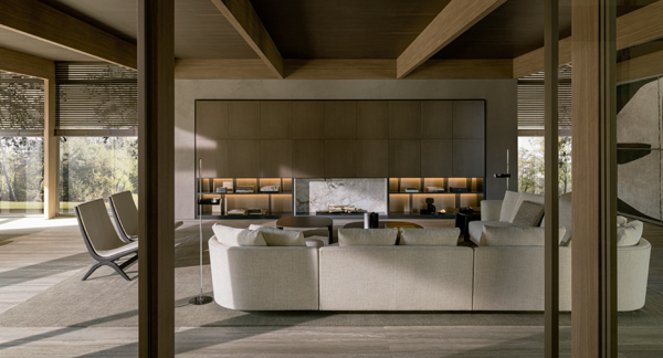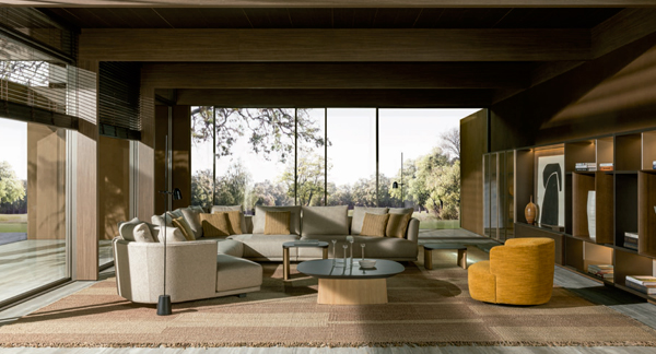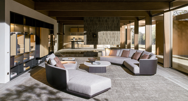 El sofà Cleo de Molteni & C está disponible en una àmplia gamma de teixits i pells, oferint solucions funcionals i elegants per a la zona de dia.