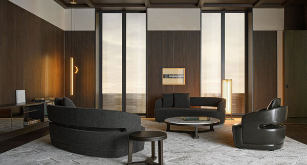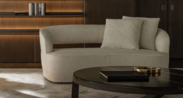 El sofà Lucio destaca per les seves costures tonals que ressalten la seva silueta corba i elegant, mentre que les obertures estratègicament col·locades en el respatller aporten lleugeresa i fluïdesa al disseny.