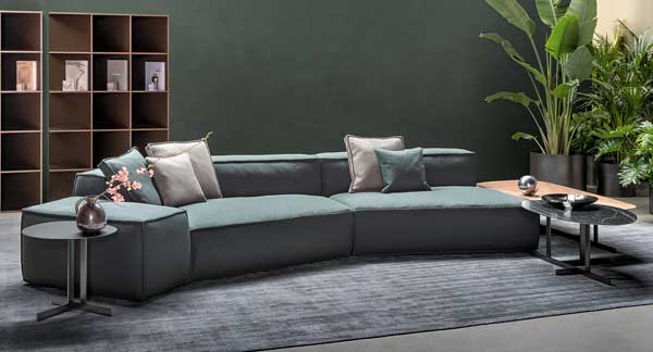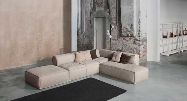 El disseny del sofà es caracteritza per les seves línies asimètriques, pentagonals i trapezoidals que neixen de la combinació dels diferents elements que formen la col·lecció.