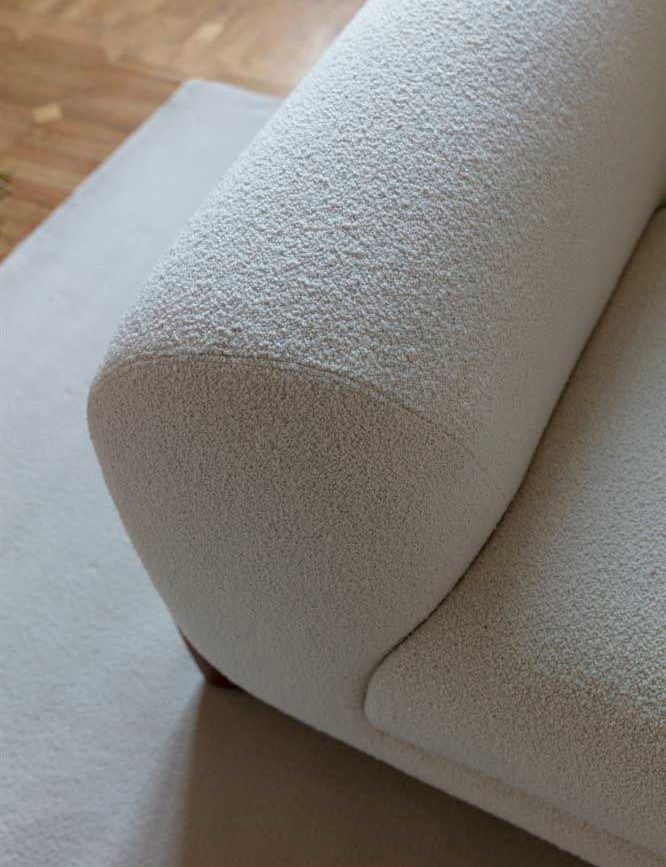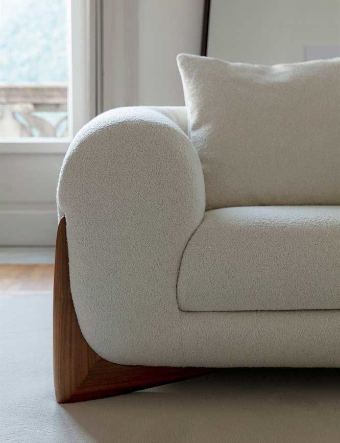 El sofà es caracteritza per la seva estructura interna en fusta contratxapada, que es reverteix de poliuretà de diferents densitats que s’adapta perfectament al cos, redistribuint el pes sobre tota la superfície per a garantir la màxima comoditat.