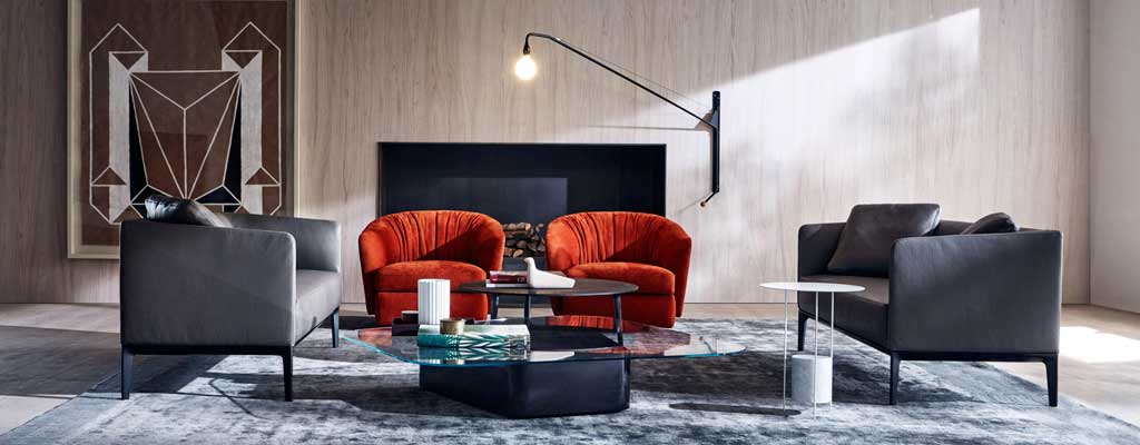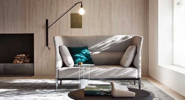La colección Camden de Molteni & C está formada por un conjunto de sofás con respaldo que se presentan en diferentes alturas.