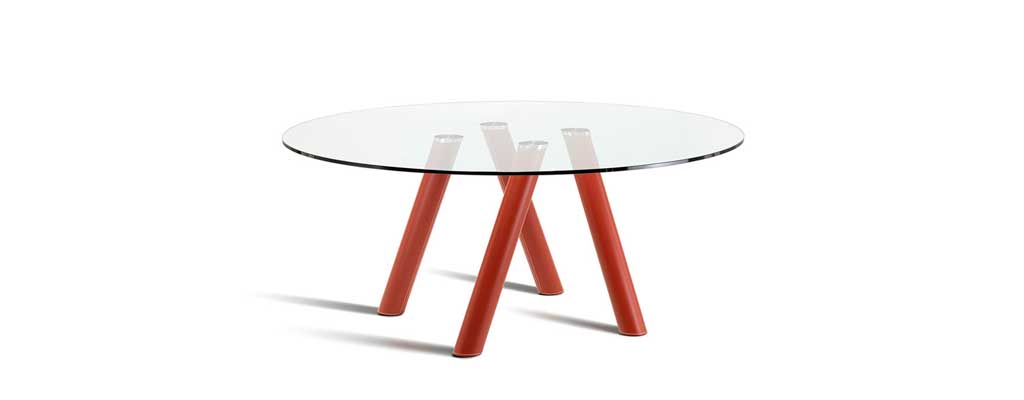 La pieza destaca por sus resistentes patas en acero barnizacio, disponibles en varios colores y acabados. El Sobre se presenta en cristal transparente templado de 15mm.