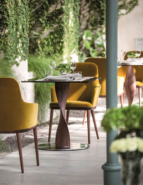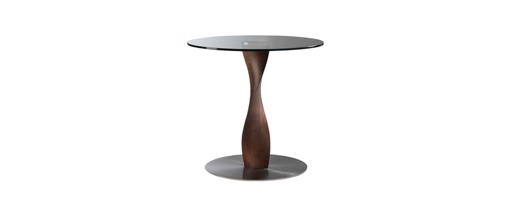 Se trata de una espectacular mesa con base en madera de nogal canaletta o fresno, que se caracteriza por su espectacular forma escultórica helicoidal.
