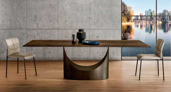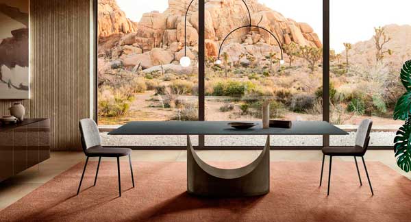 Se trata de una mesa de líneas sobrias que se inspira en diseños clásicos, adecuándolos a los nuevos tiempos mediante una estética equilibrada de minimalismo contenido.