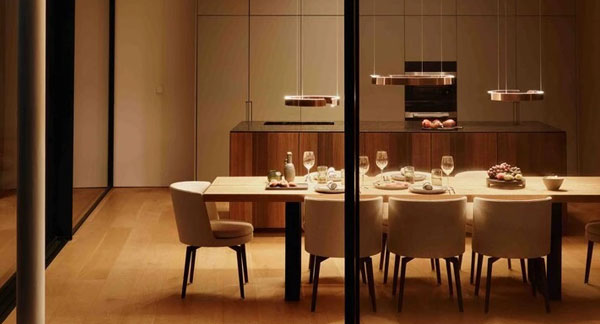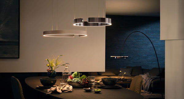 Su diseño, de una elegancia inconfundible, permite modular la luz de forma intuitiva y precisa, transformando la atmósfera del espacio con un simple gesto.