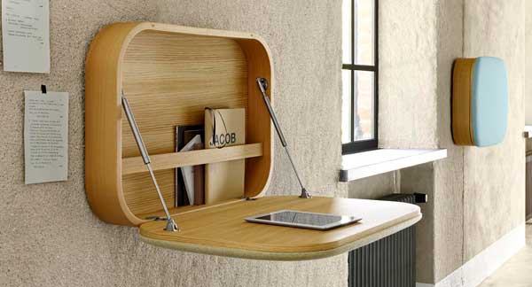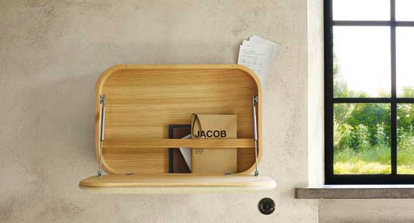 Nubo de la reconocida firma francesa Ligne Roset es una exclusiva e innovadora estantería de pared que gracias a su estructura desplegable, puede convertirse también en una funcional mesa de trabajo.