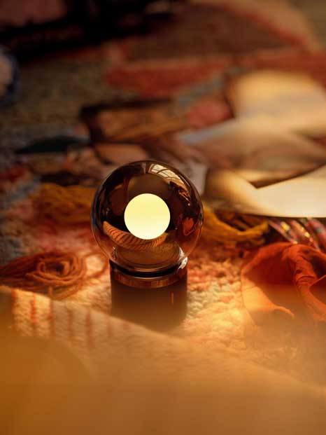 Su silueta depurada y la innovadora tecnología fireball generan una iluminación envolvente, capaz de oscilar entre una claridad etérea y una calidez íntima, como el resplandor suave de una vela.