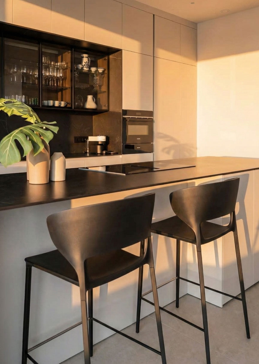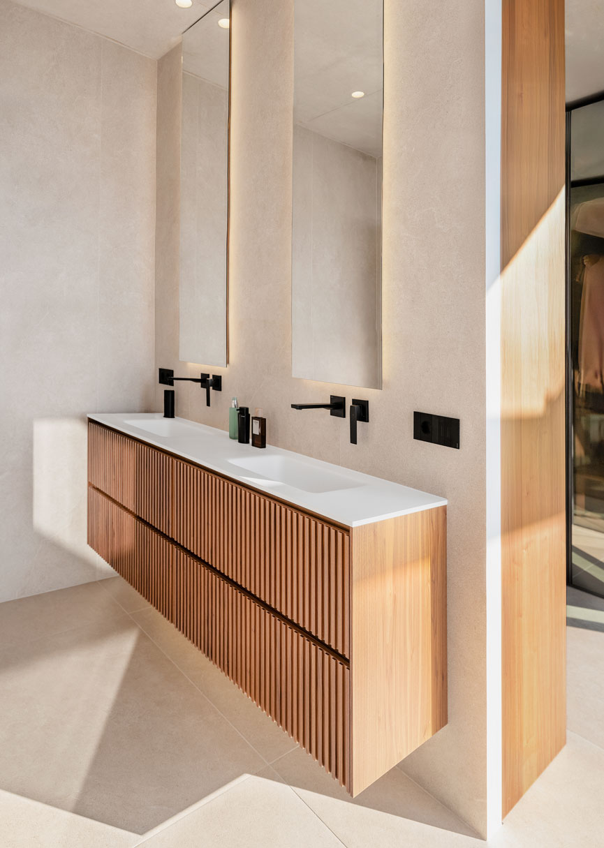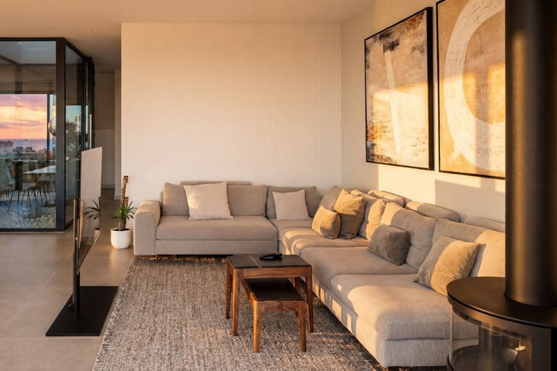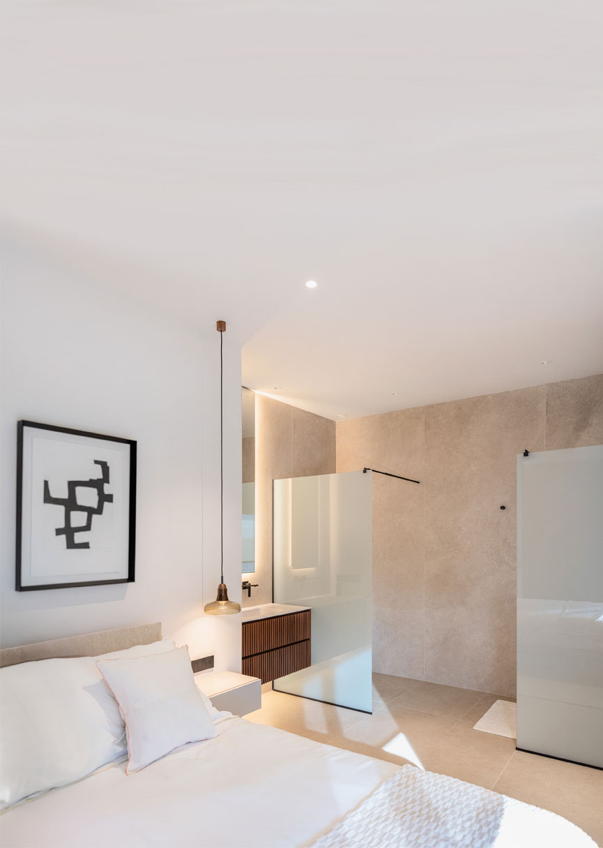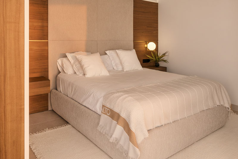 Una vivienda donde el mobiliario de alta calidad de B&B Italia, Desalto, Bonaldo y Pianca enriquecen los espacios diáfanos en tonos neutros. Un refugio de sofisticación serena donde el rigor italiano y la calma mediterránea elevan el bienestar.