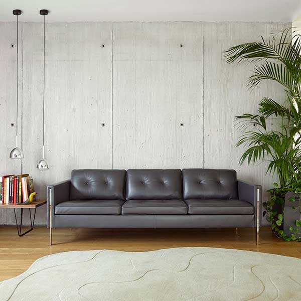 Las patas en acero cromado llegan hasta los brazos, confiriendo a la colección una imagen de elegancia y sofisticación que lo diferencia del resto de sofás.