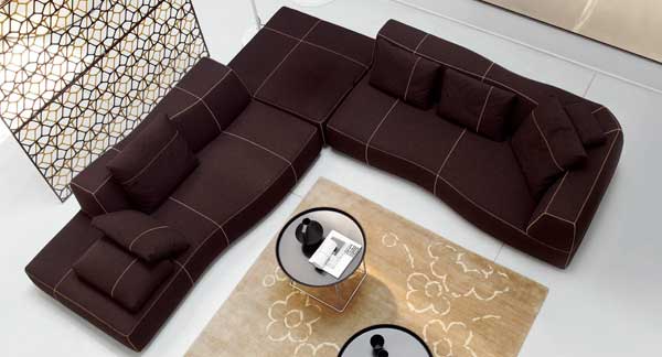 El respaldo del sofá, se define por su trazo irregular, potenciando al máximo la comodidad. Los módulos de la colección Bend permiten múltiples soluciones de personalización según los gustos o las necesidades del cliente.