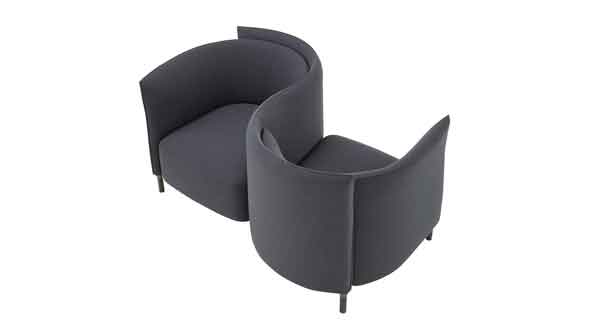Como su propio nombre indica, se trata de un sofá de volúmenes geométrico en forma de semicírculo, que a la reflexión y que contribuye a generar una atmósfera constructiva y de debate.