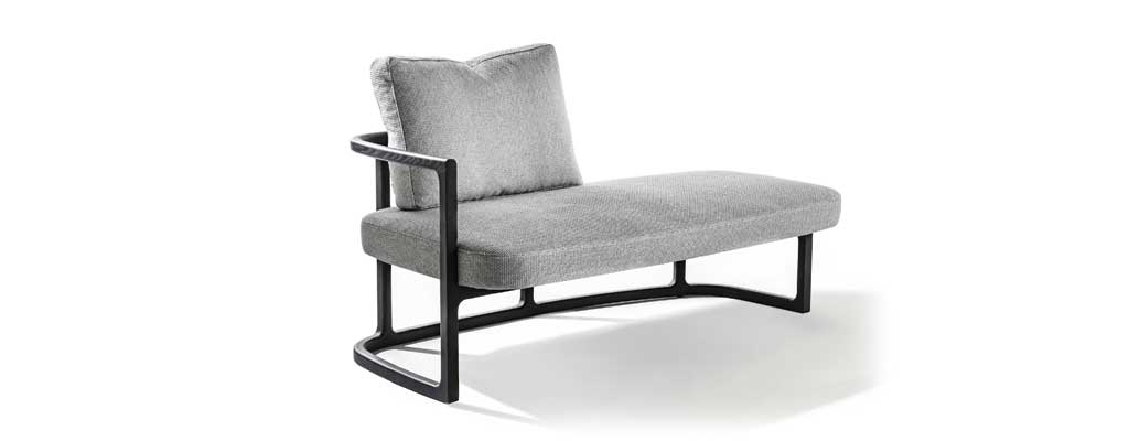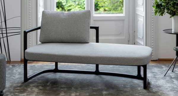 Romain de la reconocida firma italiana Porada es un elegante y sofisticado sofá Meridienne patentado por el reconocido diseñador E. Gallina.