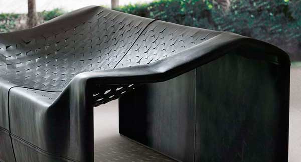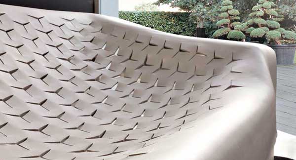 El sofá Skin de la firma italiana Molteni & C se caracteriza por su espectacular textura, que parece estar en suspensión, dejando atravesar la luz.