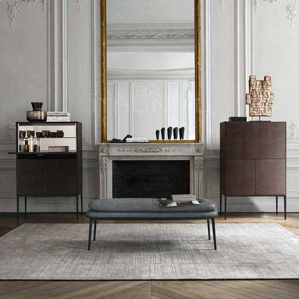 Caratos es una serie de asientos tapizados unidos por un marco reconocible en aluminio fundido a presión. Una versión caracterizada por un respaldo tapizado envolvente que también forma el reposabrazos, Caratos es una silla que está libre de restricciones posturales, favoreciendo la conversación y la interacción con los que están cerca. Otra versión, disponible únicamente en piel, destaca por su estructura geométrica básica con espesores y detalles muy calibrados. Se trata de un producto decididamente ligero, no sólo por su diseño esencial y lineal, sino también por su reducido peso que garantiza un fácil manejo. El asiento y el respaldo están formados por paneles estructurales de plástico sobre los que descansa una capa de poliuretano que luego se recubre con cuero de primera calidad.