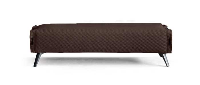 Cuff: los alamares salpican y decoran los bordes, las aplicaciones de piel enriquecen la tapicería, las patas de metal pintado otorgan más elegancia. Es precisamente con esta