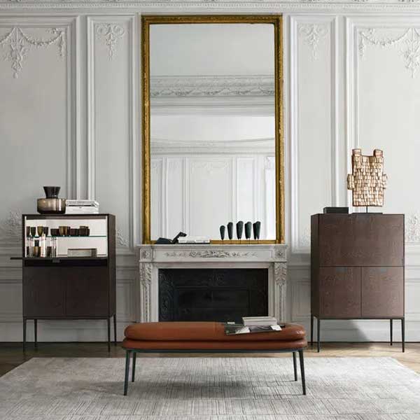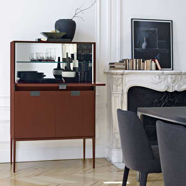 Alcor es una familia de armarios, aparadores y consolas marcada por una estética rigurosa combinada con superficies de madera preciosa, expresión de la excelencia de los procesos artesanales de Maxalto. Ofrecidas en diferentes configuraciones, dimensiones y alturas, con puertas batientes y batientes, cajones y compartimentos abiertos, estas piezas cuentan con un damero incrustado en varias maderas a elegir en los distintos acabados que incluye la colección. Un tratamiento adicional de las superficies las hace especiales y preciosas con variaciones cromáticas de goma laca. Este último, combinado con el colorido, hace pensar en Oriente, pero al mismo tiempo es una expresión de gran artesanía. Toda la serie tiene una estructura visualmente ligera con soportes de aluminio pintado.
