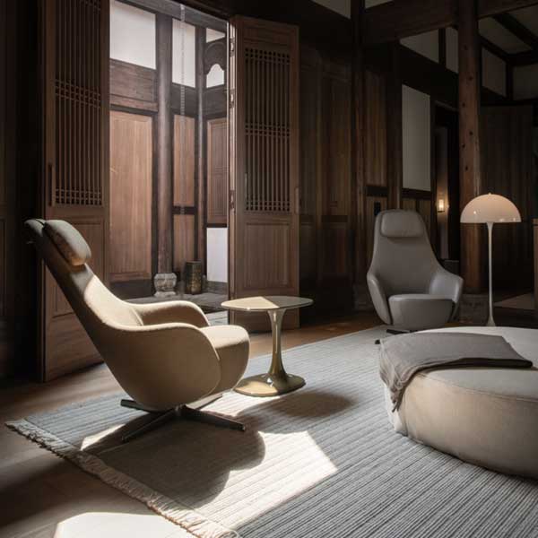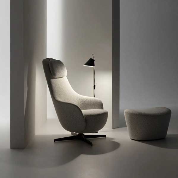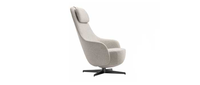 Harbor Laidback es un sillón versátil e innovador que redefine el concepto de relajación siguiendo la tradición de los sillones Harbor, un clásico que comparte el origen de la forma troncocónica invertida y la línea armoniosa y fluida. Equipada con una base giratoria de aluminio de cuatro radios, Harbor Laidback dispone de un mecanismo inédito, perfectamente oculto en la estructura, que permite el movimiento simultáneo del respaldo y del asiento. Para controlar el movimiento, basta con accionar una palanca estratégicamente situada entre el cojín y el reposabrazos: una vez alcanzada la posición más cómoda, se suelta la palanca y el respaldo se detiene en el ángulo deseado.
