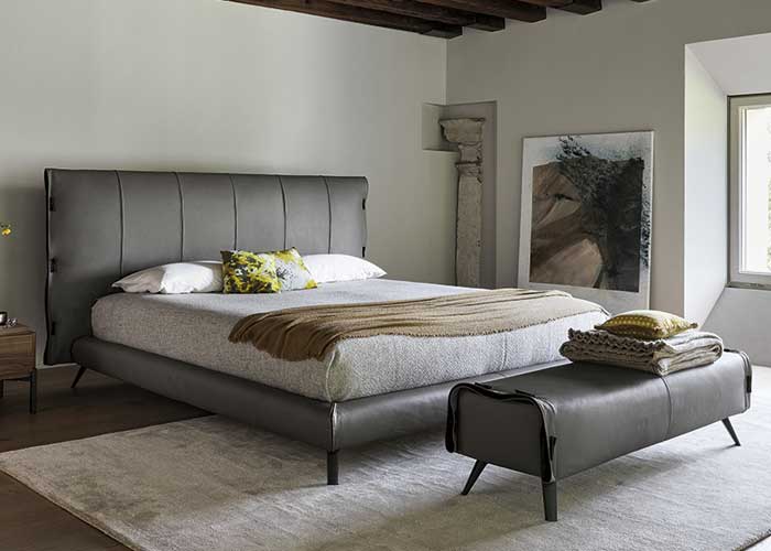 Cuff, disponible en versiones dobles o individuales, es una cama elegante por los preciosos detalles que la caracterizan: los alamares que salpican los dos bordes de la cabecera acolchada, el plisado que la marca verticalmente, las aplicaciones de piel que enriquecen el marco de la cama, y las patas en metal pintado en colores refinados. Realizada con una tapicería completamente removible desenfundable en tela, piel o piel ecológica.
