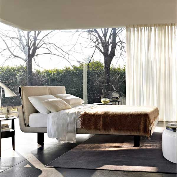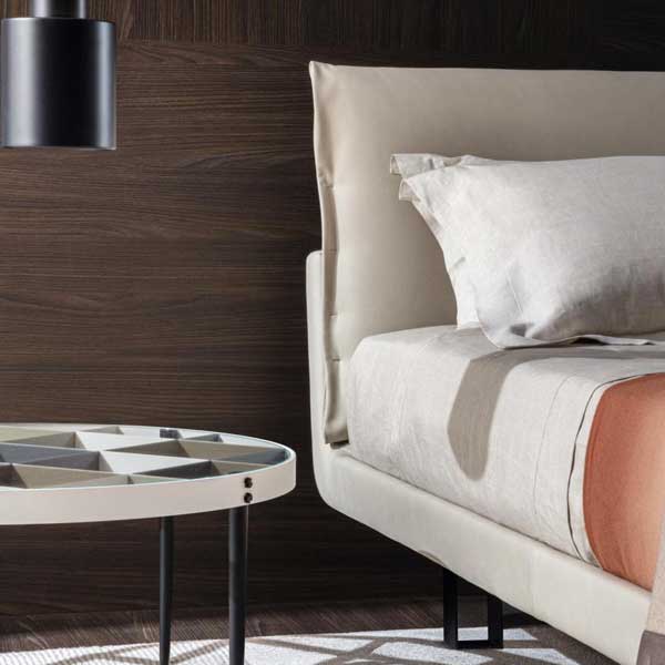 Una cama sencilla pero elegante, caracterizada por revestimientos en textil o piel, enriquecidos por materiales y procesos de confección de sastrería, típicos de los modistos más refinados. Honey propone una línea moderna para la cama textil de tamaño reducido, también diseñada para ambientes recogidos. El contenedor bajo el somier disfruta de un mecanismo basculante de nuevo concepto estudiado para facilitar el acceso al módulo.