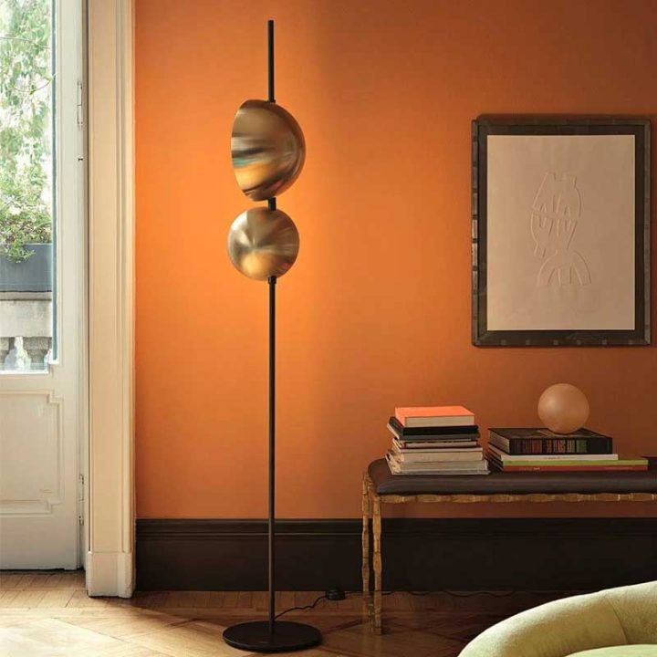 Inspirado por las formas evocadoras de Vico Magistretti y en la expresión de la luz, Superluna propone un tipo de iluminación técnica que a su vez tenga un importante componente emocional en el espacio, dimensionando la capacidad del tamaño del LED. La lámpara de pie Superluna se produce en color negro o dorado.