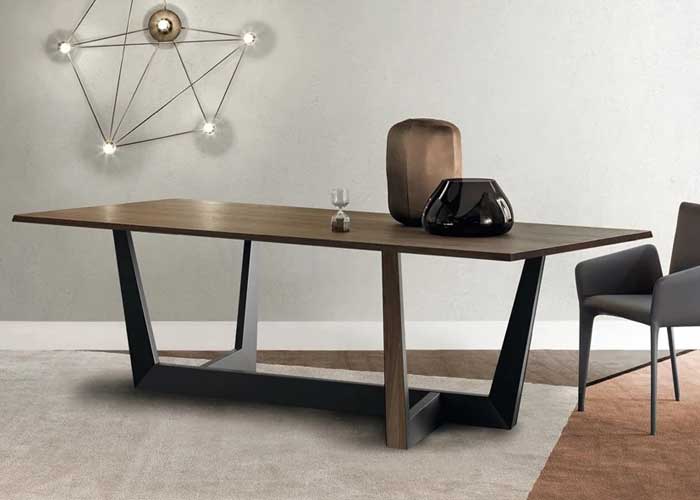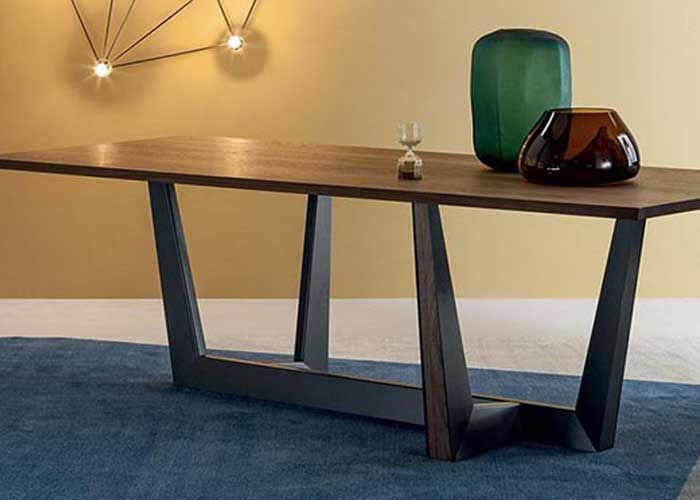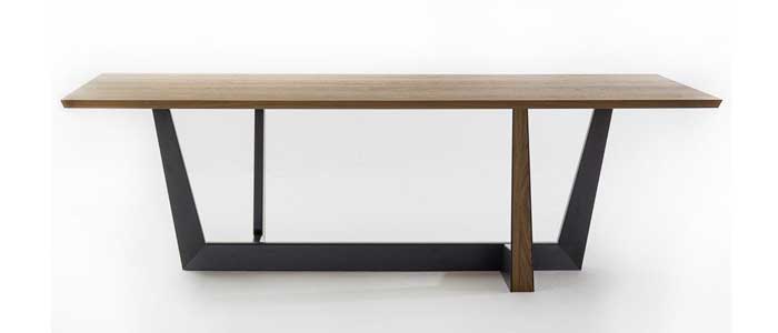 La base de la mesa Art es el elemento que más la caracteriza: consiste en un trapecio de metal que se desarrolla