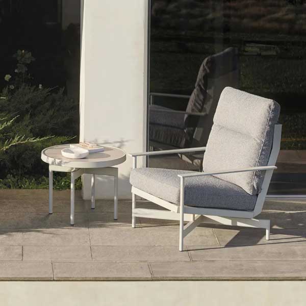 La mesa alta ONDE es una mesa de diseño de estructura de aluminio soldado y chapa de aluminio ondulado con acabados en pintura en polvo termolacada de alta calidad, idónea en aplicaciones de exterior. Su top está realizado con la innovadora superficie ultracompactada Dekton® by Cosentino, altamente resistente al rayado y a las manchas, y cuyo colour no se degrada con el tiempo por su fortaleza ante los rayos ultravioleta (UV).