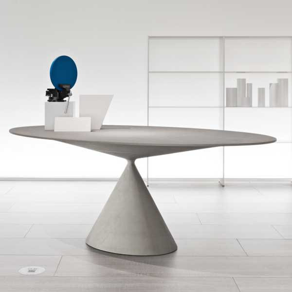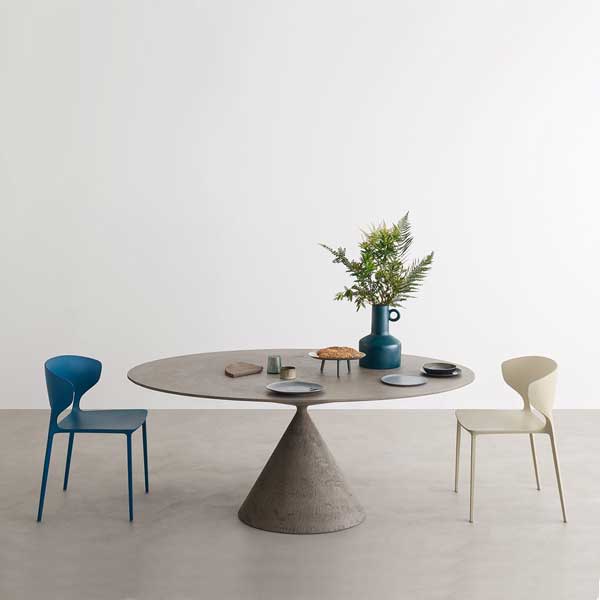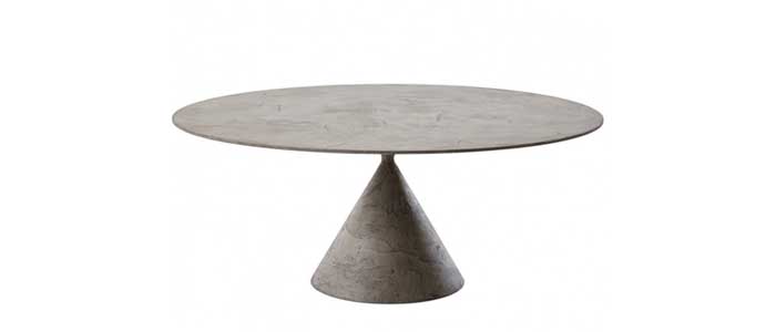 Mesa desmontable con base en poliuretano rígido disponible en acabados lacados o espatulados según tarifa. Bases y tapas redondas o elípticas. Tapas de cristal, cerámica o MDF. Disponible en versiones para interior y exterior.
