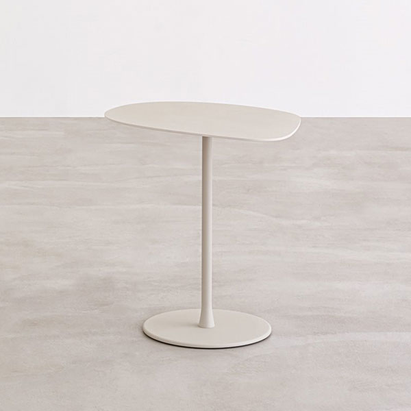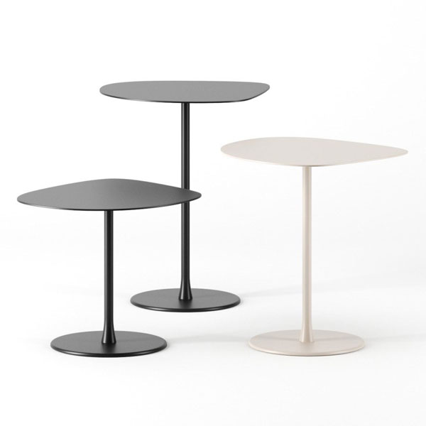 Mesita con sobre en laminado estratificado o barnizado. Tubo y base en acero barnizado del mismo color del sobre. Disponible también con sobre en cerámica mm 6, utilizable también en el exterior.