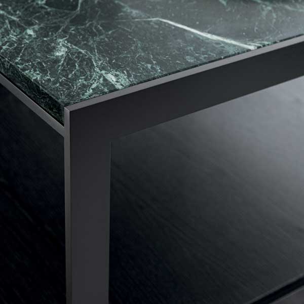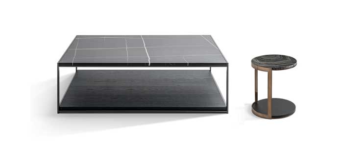 Sistema completo y equilibrado de complementos adecuado para todos los ambientes del hogar, sorprende por el equilibrio estético y la proporción rigurosa de todos y cada uno de sus componentes. La estructura de la mesa plasma un ritmo entre llenos y vacíos, enriqueciéndose con dos acabados: color peltro y oro antiguo brillante. Las superficies dobles enriquecen la parte superior en madera, mármoles, cristal tintado y madera en la parte inferior. Materiales y elaboraciones refinadas, atención por todos y cada uno de sus detalles, para una familia de complementos de diseño contemporáneo, elegantes y refinados.