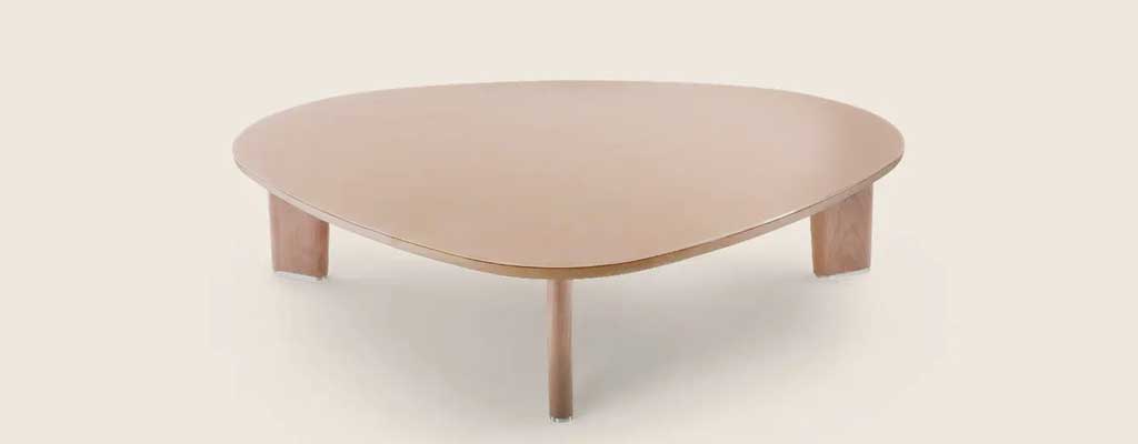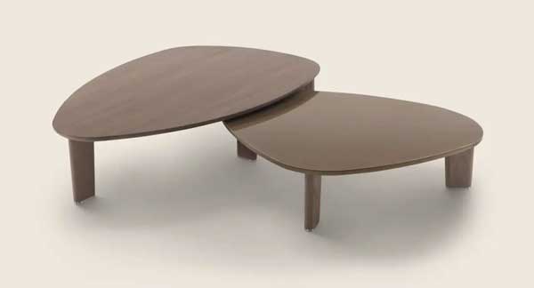Una familia de mesas y mesas de centro caracterizadas por líneas esenciales, que a la tradición le añaden una expresión contemporánea. El diseño de las patas y su posición oblicua aporta dinamismo al proyecto. El espesor del tablero de la mesa y el de las patas le da solidez al conjunto.