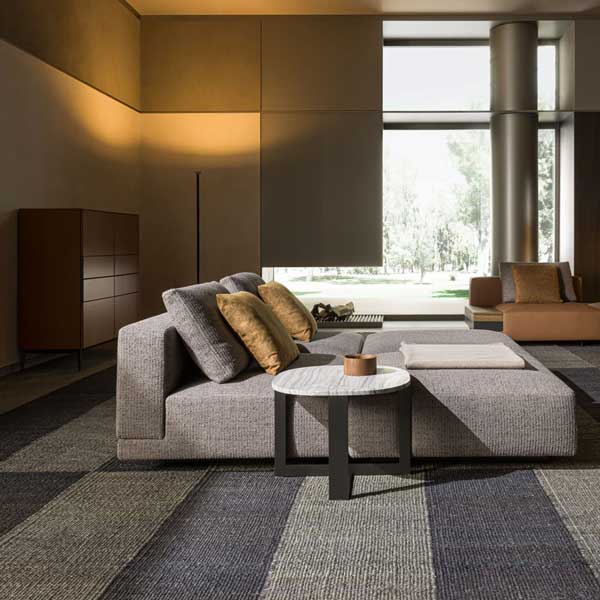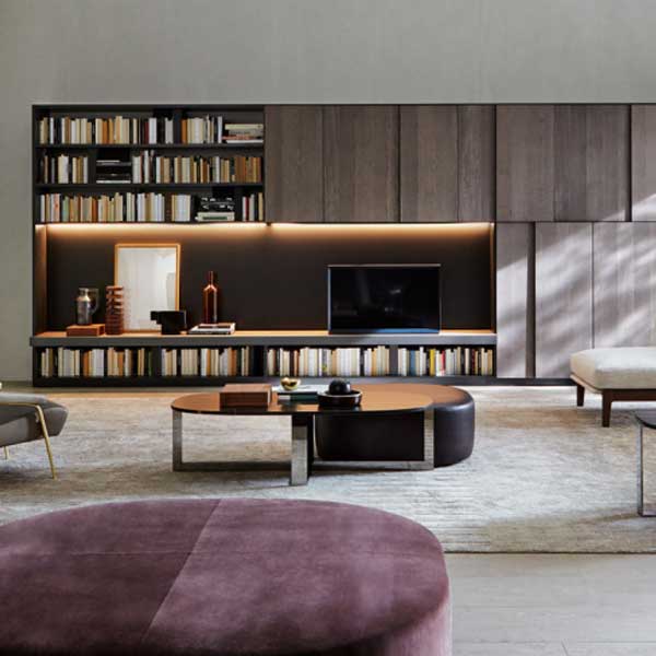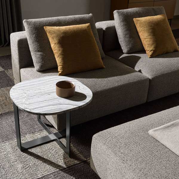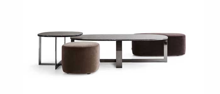 Nicola Gallizia desarrolla un programa de elementos versátiles por su forma de construcción y utilización, basado en la búsqueda de formas estilizadas y materiales de gran personalidad, en un juego continuo de persecuciones y solapamientos. Complementos, entre otros, mesitas ovaladas, bancos y pufs, que pueden utilizarse en cualquier tipo de proyecto, están realizados utilizando y alternando acero, madera, piedra, textiles y piel. Color, materia y forma son la inspiración y la síntesis de la colección.