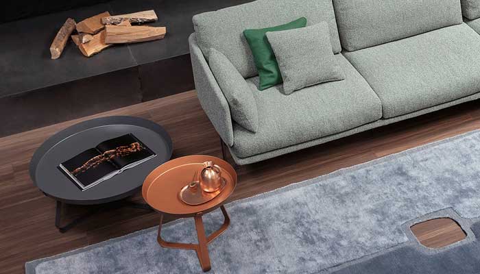de centro Bonaldo. El diseño geométrico, delgado y redondeado de la estructura les otorga ligereza y un juego de equilibrios entre esquinas afiladas y ángulos redondeados sustenta una práctica bandeja extraíble, un elemento que se puede embellecer aún más con una tablero de cerámica refinada.