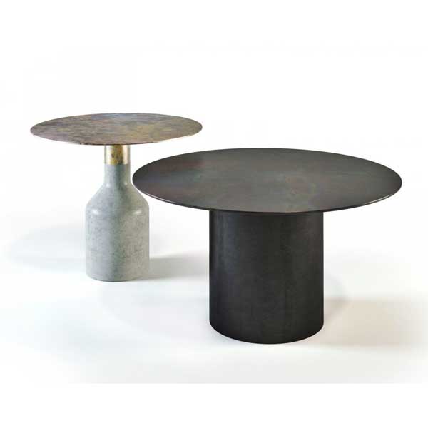Esta colección de mesas se inspira en la arquitectura contemporánea, la escultura y la investigación de los materiales utilizados, en particular, las propiedades naturales de oxidación. Por lo tanto, se trata de combinar materiales ‘sostenibles’ como la piedra o el metal y convertirlos en una forma arquitectónica. Las mesas Oxydation combinan una forma simple con una textura complicada y son una mezcla de técnicas tradicionales y tecnologías muy avanzadas. A medida que se oxida, el metal puede traer algunos resultados inesperados: cada mesa es naturalmente única y seguramente descubrirá una miríada de variaciones en su parte superior oxidada. Tablero y base de acero oxidado (tratado al ácido), acabado con barniz transparente.