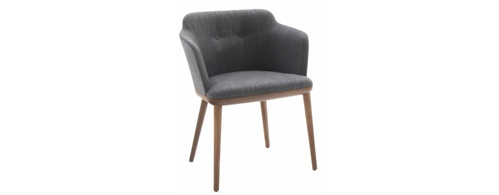 El asiento y el respaldo están revestidos con las telas exclusivas de la colección, ofreciendo una amplia variedad de texturas y colores que permiten personalizar la pieza según el estilo del espacio. Además, los botones decorativos, disponibles en la misma tela del revestimiento o en contraste, añaden un detalle distintivo que enriquece el diseño, aportando un toque de carácter único a cada silla.