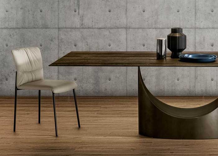 Sinuosa y confortable, la Silla Woop regala una sensación de delicadeza y suavidad única. Los pliegues del tejido la vuelven extremamente generosa sin comprometer su ligereza. El armazón está disponible en los acabados Peltro steel y Titanio steel mientras que los revestimientos del asiento se pueden elegir entre piel, ecopiel, terciopelo y tejido.
