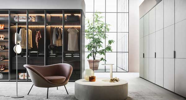 La butaca D.154.2 de Molteni & C, diseñada por Gio Ponti, presenta una forma envolvente con respaldo curvo y asiento acolchado, montada sobre una base metálica. Su diseño icónico y elegante combina comodidad con una estética de mediados del siglo XX, reeditada con materiales modernos para interiores contemporáneos.