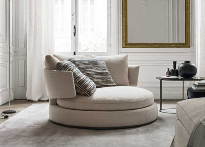 Amoenus Soft es una gama de asientos con una fuerte personalidad que ofrece un gran confort: un sofá lineal en dos tamaños, elementos modulares para crear sofás de esquina también con chaise longue, un sofá circular y giratorio que se puede utilizar como pieza central de la habitación. La tapicería está disponible en tela con perfiles de cuero ecológico y en cuero con costuras refinadas de “perfil”. La serie se completa con un puf circular en dos tamaños y un sillón giratorio con respaldo curvo.