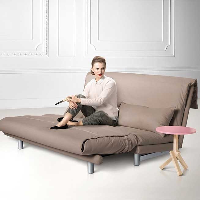 Este modelo ofrece una posición intermediaria entre el sofá y la cama : la tumbona, en posición de relajación con el asiento desplegado.