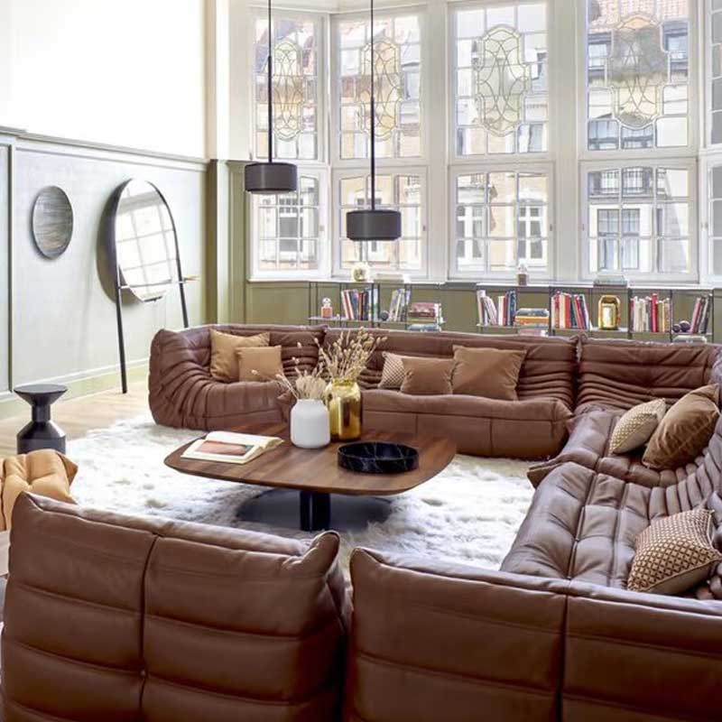 El Togo de Ligne Roset es un icónico sofá diseñado en 1973 por Michel Ducaroy, reconocido por su forma escultórica y su innovador enfoque ergonómico. Se caracteriza por su estructura completamente realizada en espuma de poliuretano de múltiples densidades, lo que proporciona un confort envolvente y sin necesidad de estructura rígida.