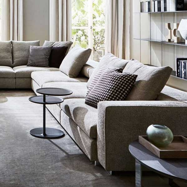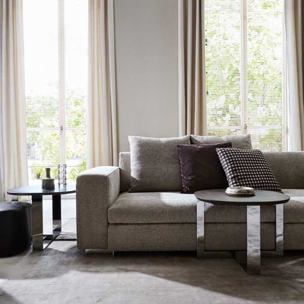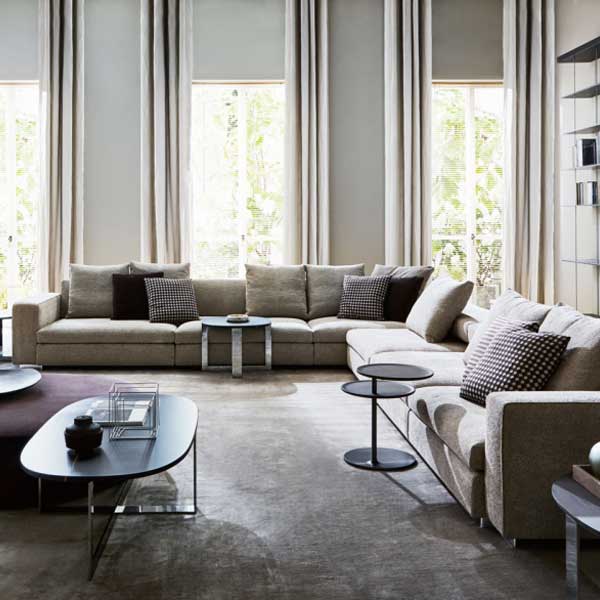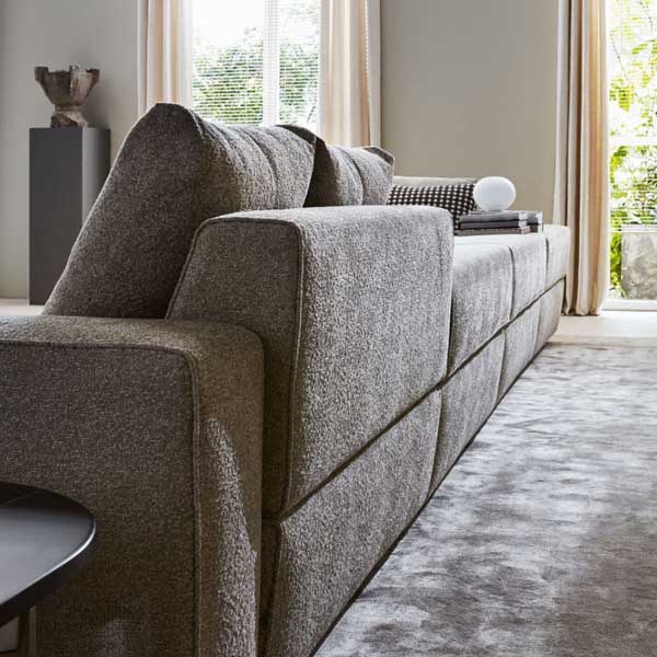 Hannes Wettstein diseña un sistema de elementos componibles capaces de atender diferentes necesidades de confort y postura gracias a un mecanismo fácil de utilizar que permite variar la profundidad de los asientos. Su amplia modularidad permite componer sofás tradicionales, composiciones con chaise longue o islas day bed.