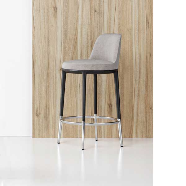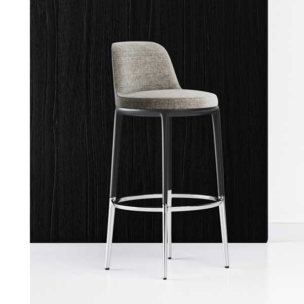 Caratos es una serie de asientos tapizados unidos por un marco reconocible en aluminio fundido a presión. Una versión caracterizada por un respaldo tapizado envolvente que también forma el reposabrazos, Caratos es una silla que está libre de restricciones posturales, favoreciendo la conversación y la interacción con los que están cerca. Otra versión, disponible únicamente en piel, destaca por su estructura básica y geométrica con espesores y detalles muy calibrados. Se trata de un producto decididamente ligero, no sólo por su diseño esencial y lineal, sino también por su reducido peso que garantiza un fácil manejo. El asiento y el respaldo están formados por paneles estructurales de plástico sobre los que descansa una capa de poliuretano que luego se recubre con cuero de primera calidad. También forman parte de la colección los taburetes con asiento giratorio, capaces de adaptarse a ambientes de decoración heterogéneos a través de líneas contemporáneas que recuerdan, sin embargo, a ciertos estilos de mobiliario del siglo XX.