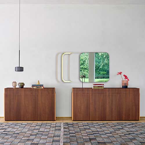 La colección se compone de un elegante aparador disponible en 3 y 4 puertas, una funcional mesa de centro y un espectacular mueble para la sala de estar.